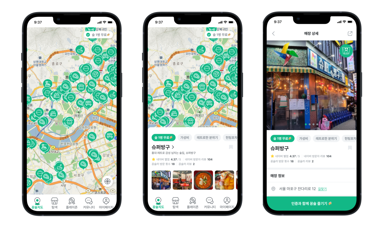 "분명 누군가는 술집 갈 때 켜는 앱"이라는 카테고리를 먹을 것인데, 우리가 한 번 해보자. 근데 그게 꽁술 하나만으로는 어려우니깐 술집 갈 때 생기는 다양한 문제들을 해결해서 이뤄보자는 생각에까지 미쳤다.
