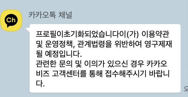 청천벽력같은 카카오 채널 삭제 통보 ㅠㅠ