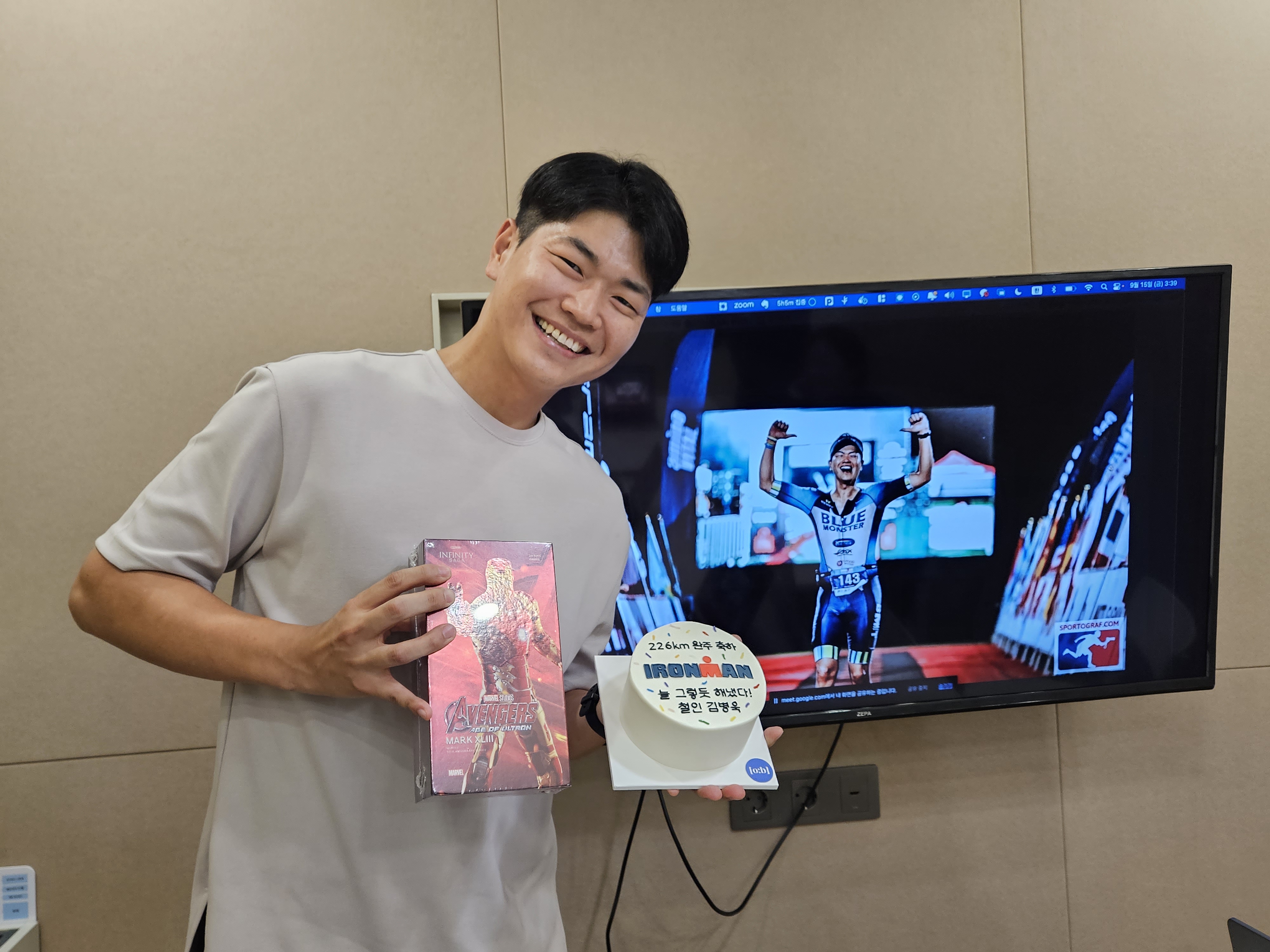회사분들이 선물해준 케이크와 아이언맨!