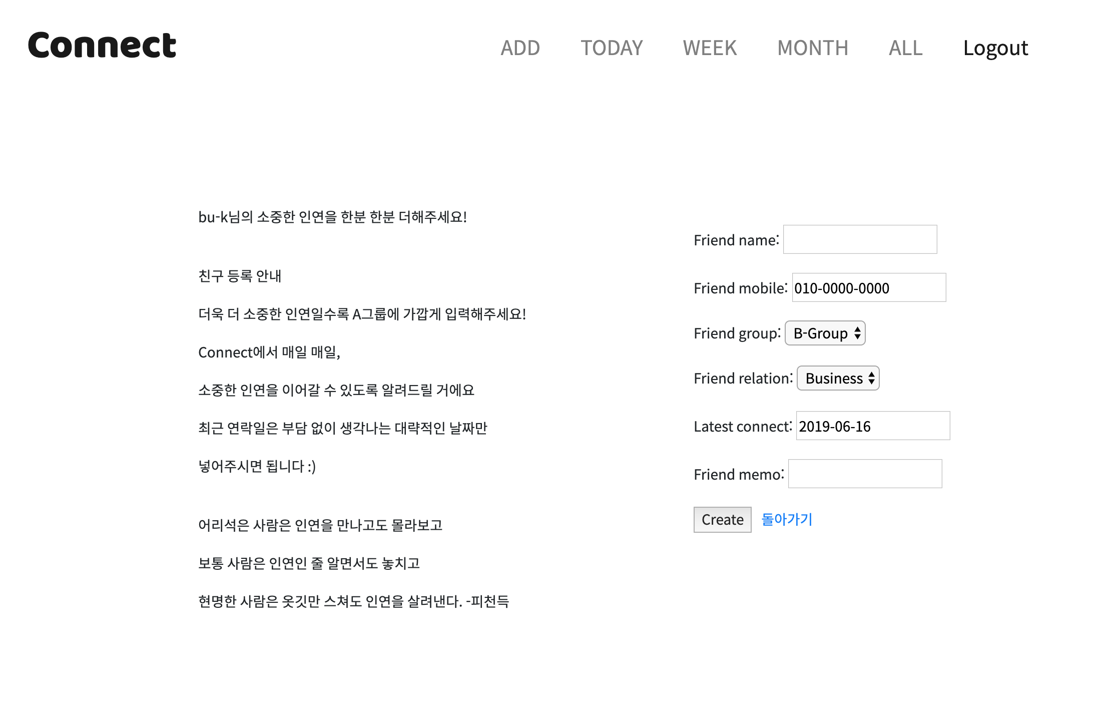 개인 인맥 관리플랫폼 Connect!