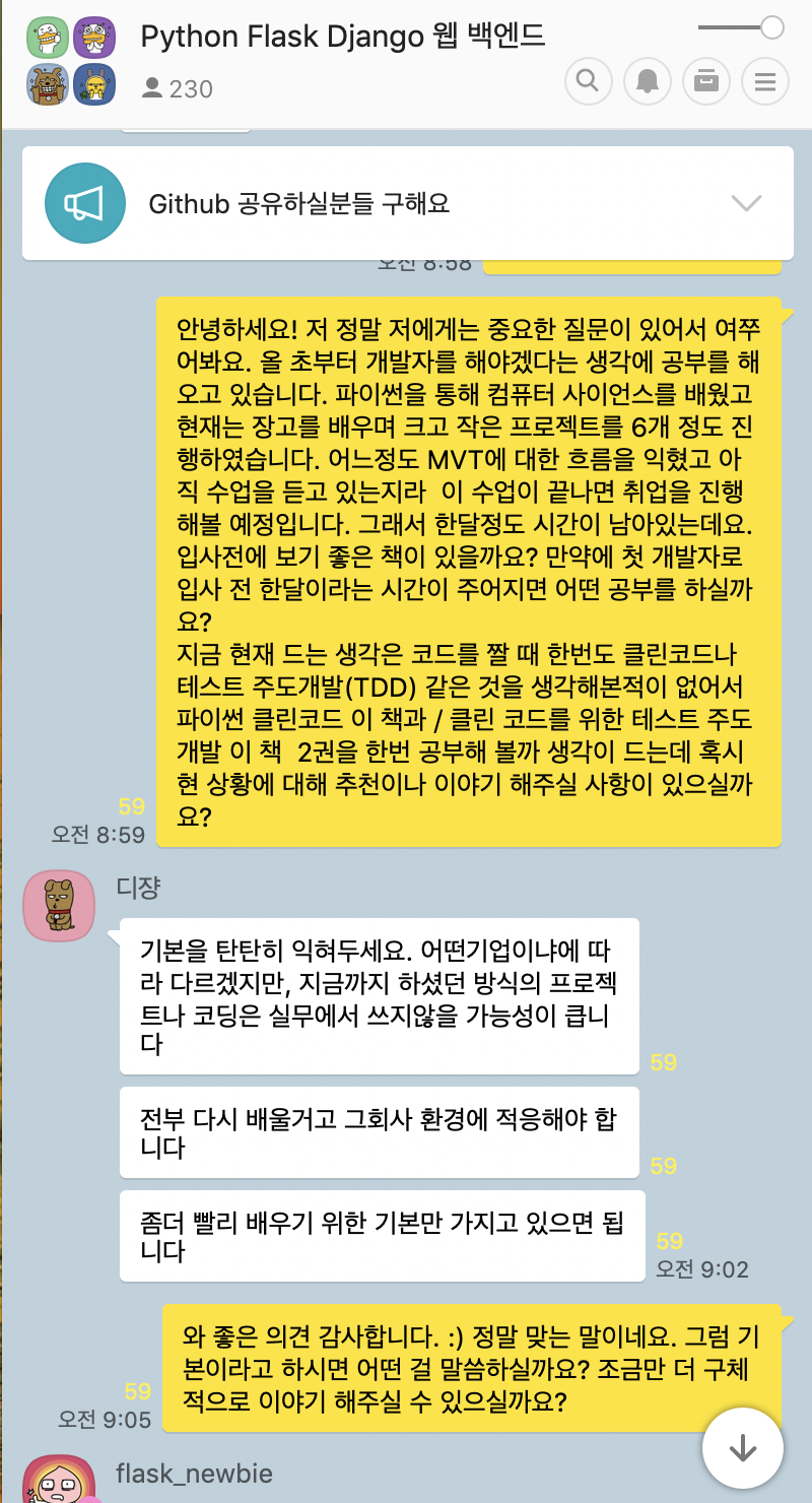 또 내가 현재 들어가 있는 장고 관련 단톡방에서는 아래와 같은 조언을 해주셨다.