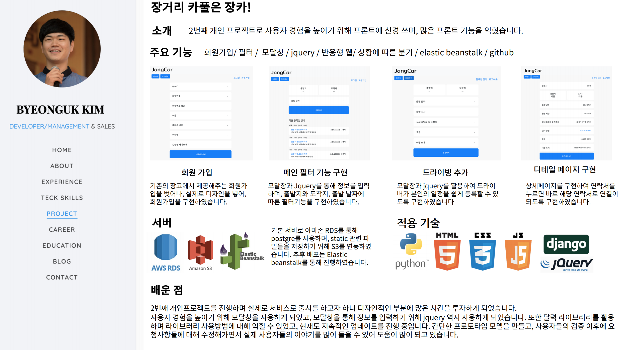 그 이후에는 위의 기술들을 사용해서 했는 실제 프로젝트들을 넣었다. 나 같은 경우 수업을 들으면서 프로젝트를 동시에 진행하였고, 실제로 내가 만들고자 하는 것들 위주로 만들었다. 진짜 고객들이 사용할 수 있는 것들 위주로 만들었고, 현재도 2개의 서비스를 운영 중에 있다. 각 프로젝트 별로 사이트 링크를 첨부하고, 따로 기술서를 첨부하였다.