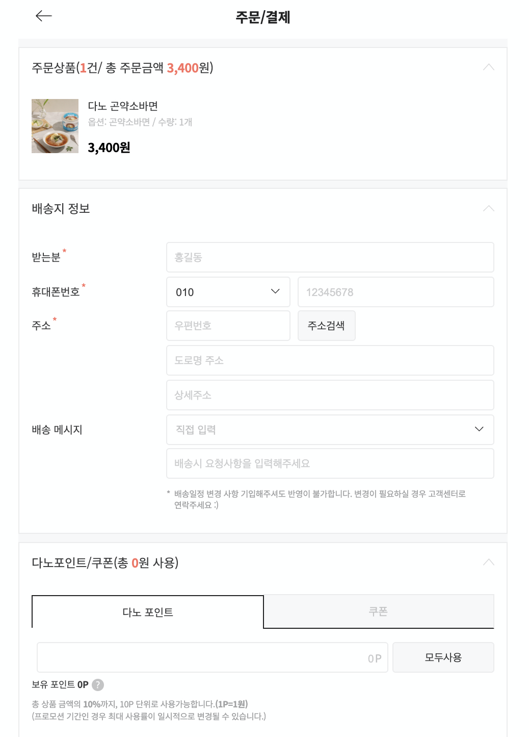 하지만 과연 그랬을까....??? 일단 가장 큰 문제는 현재 다노샵에서는 현재 주문서에서 주소지를 받고 변경할 수 있는 구조인데, 그렇다면 만약에 고객이 새벽배송만 가능한 상품을 가지고 주문서로 간 뒤, 새벽배송 불가능 주소지를 입력하게 되면 그 주문서에서 "이 상품은 새벽배송만 가능한 상품입니다"와 같은 알람이 뜬 뒤에 주문서를 탈주해야 하는 시나리오였다.