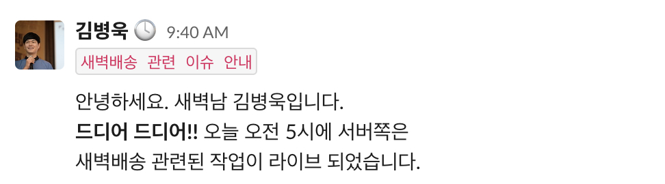 새벽 배송과 관련된 작업이었지만,
