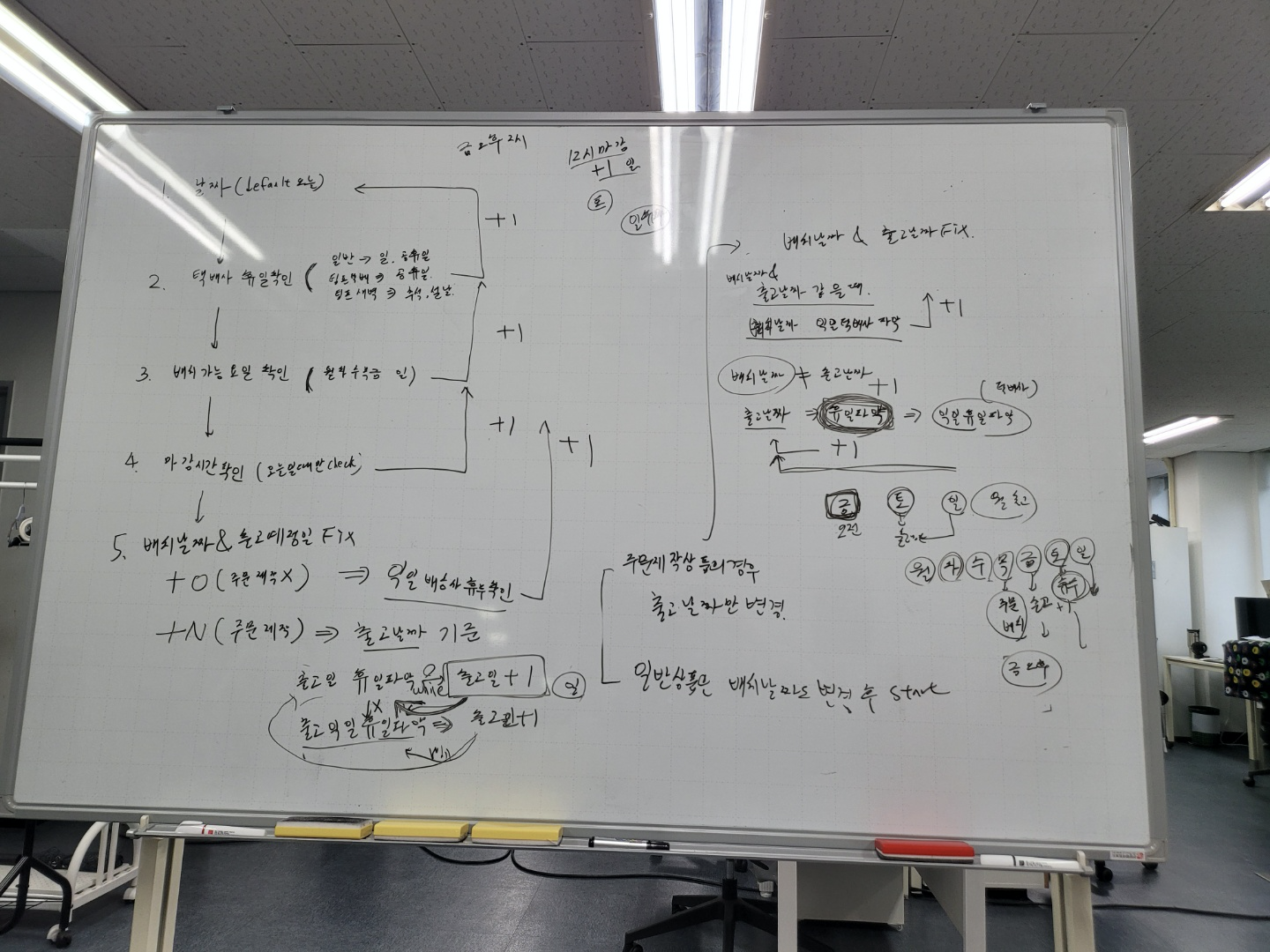 5. 배치 날짜와 출고일을 1차 FIX 하고 일반과 주문 제작 상품에 따라서 다르게 핸들링 처리한다.