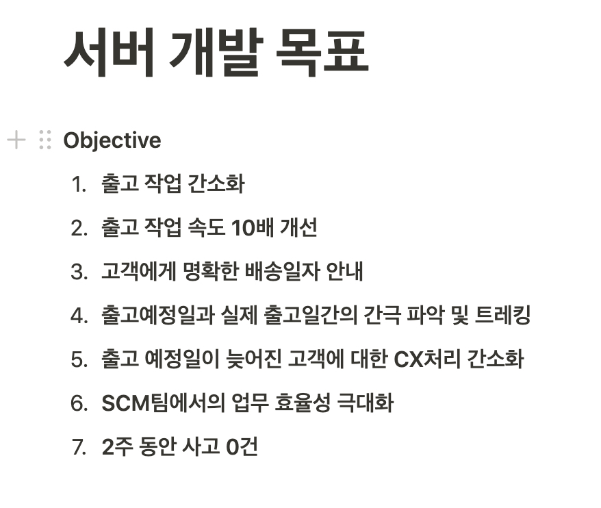 7번은 달성을 위해 출고 작업이 많이 변경되는 만큼 서버 쪽 먼저 라이브 하여, 실제 SCM팀에서 테스트를 진행해주고 계시고 있고
