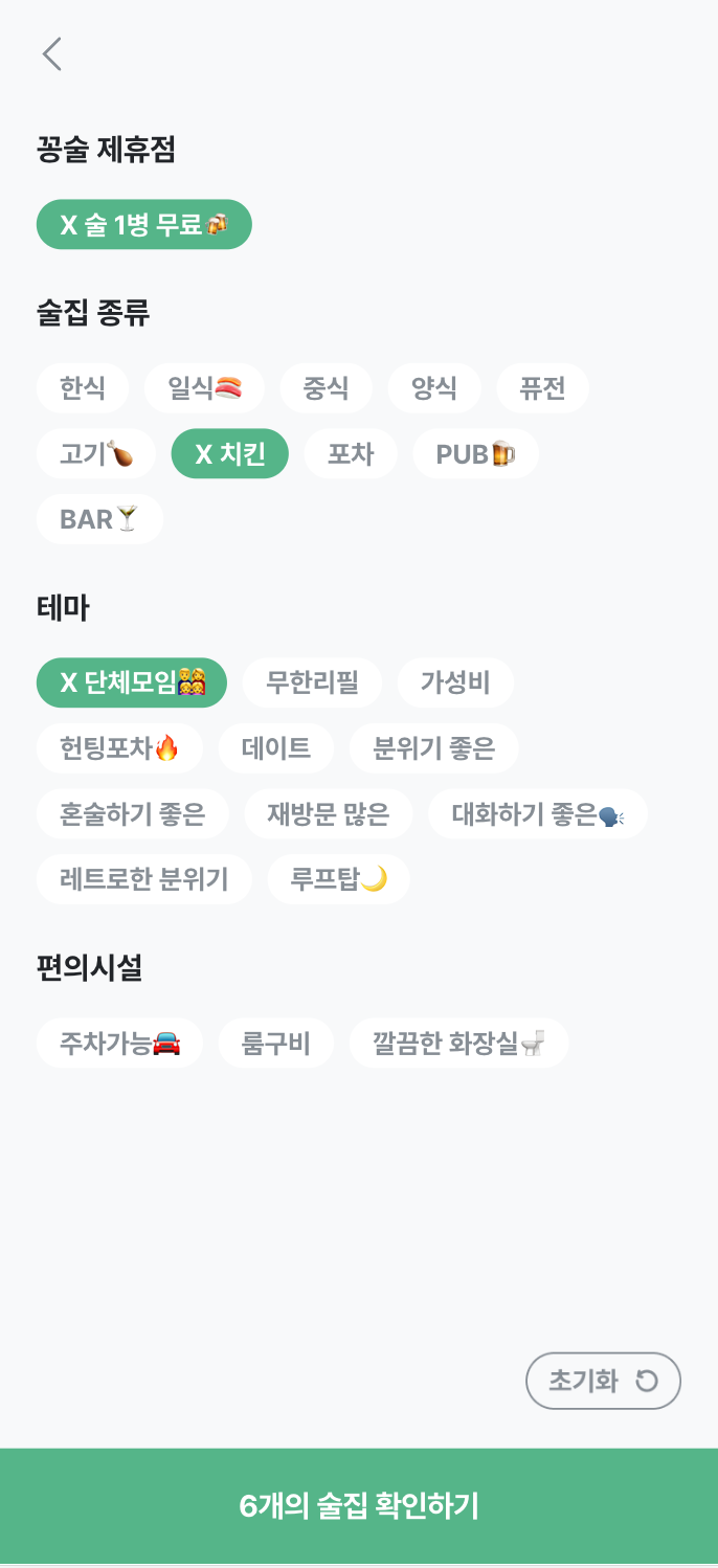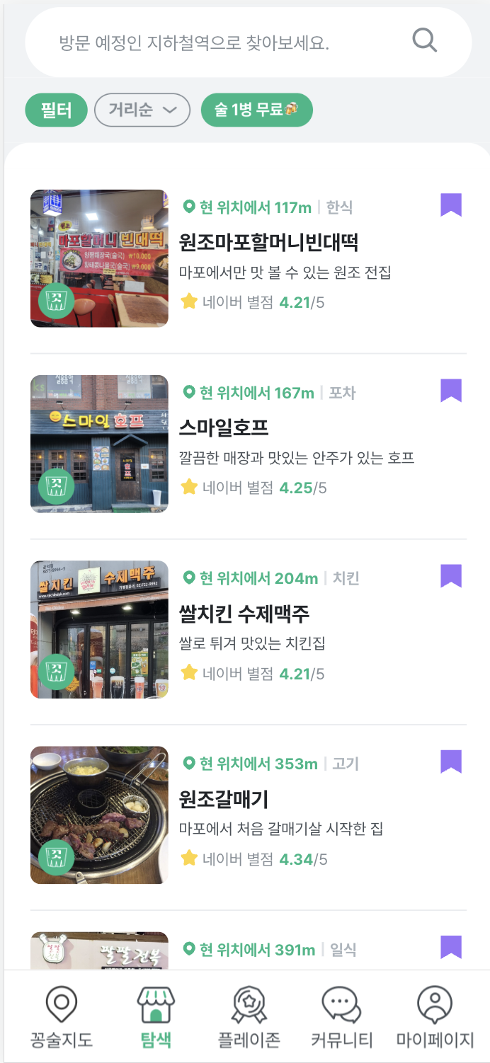 그렇게 꽁술 앱에는 다앙한 키워드(분위기 좋은, 화장실이 깔끔한, 가성비, 데이트, 헌팅포차 등등)로 필터하여 술집들을 찾을 수 있는 큐레이션 기능이 추가되었고, 다양한 게임들, 그리고 신규 이벤트들이 하나씩 추가되었다.