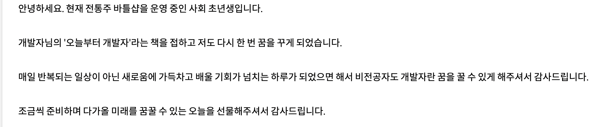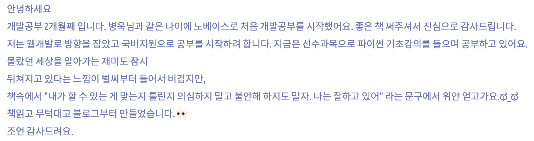 정말 블로그에 댓글로 혹은 메일로 이런 글들을 접할 때마다 너무나도 응원드리고 싶고,