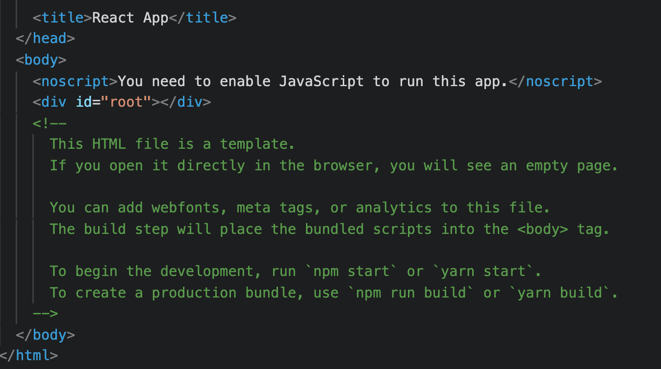 즉 react의 경우 build 된 이후의 파일을 보면 body 부분이