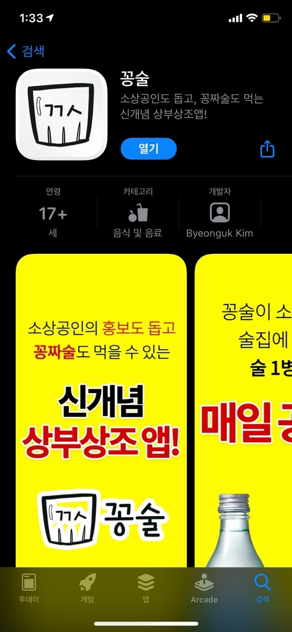 처음 출시된 꽁술앱. 지인들에게 깔아보라고 하니 개인정보를 다 털어갈 거 같다고 했다...