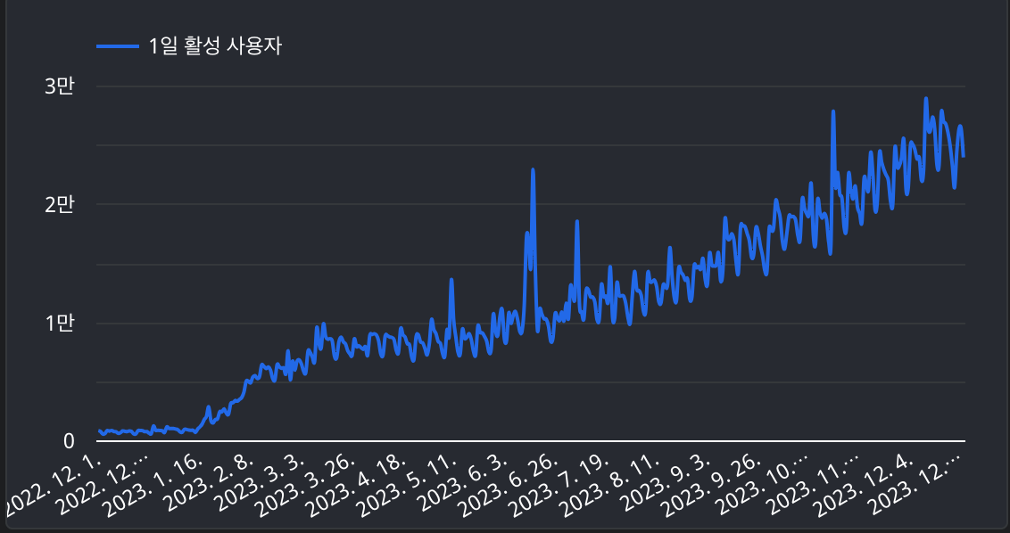 하루 사용자 기준 30배 성장했고,