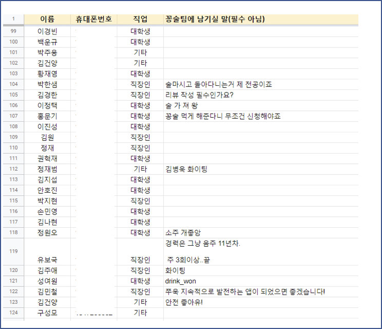 아니면 반대로 꽁술을 테이블당 1병이 아니라, 인당 1병으로 바꾸거나 애초에 술과 관련된 회사들로 광고비를 받아 앱 안에서 술값을 지원하는 이벤트를 하는게 낫지 않았을까?
