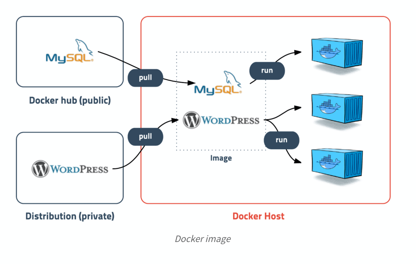 이미지는 컨테이너를 실행하기 위한 모든 정보를 가지고 있기 때문에 더 이상 의존성 파일을 컴파일 하고 이것저것 설치할 필요가 없다.